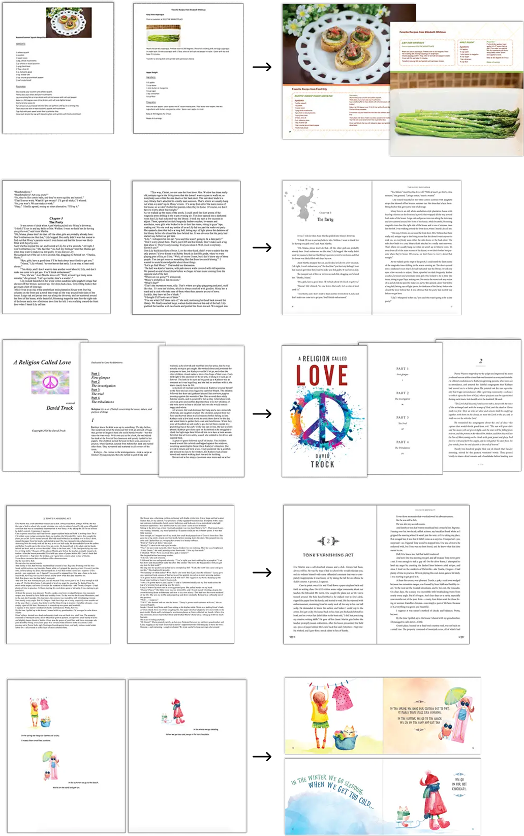 Formatting the text of your eBook is part of book design, and a clear hierarchy along with a readable typeface creates an appealing layout. Every section in your manuscript, including chapters, dedication, and foreward – a custom format is done to create a polished book. Thereafter, we send a PDF draft for approval before publishing. However, you can request Print manuscript formatting as well either in black text or color text design.